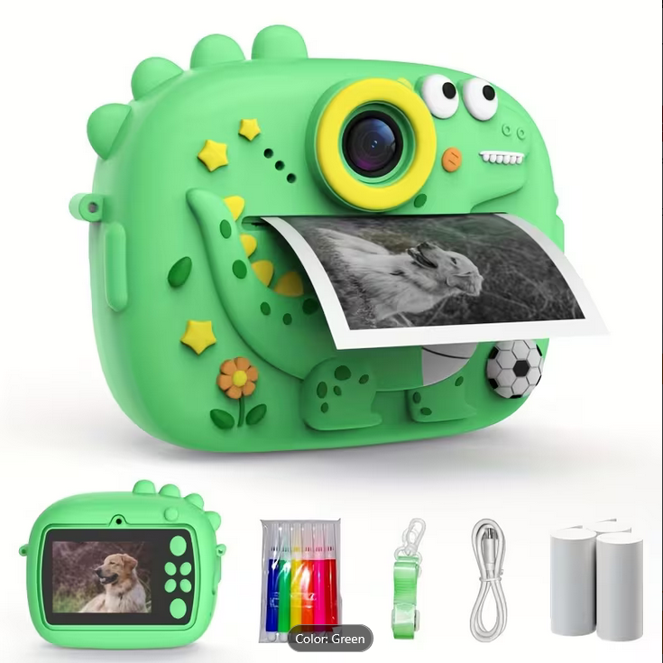 with dinosaur cartoon exterior, this camera not only captivates children’s attention but also sparks their curiosity and creativity.