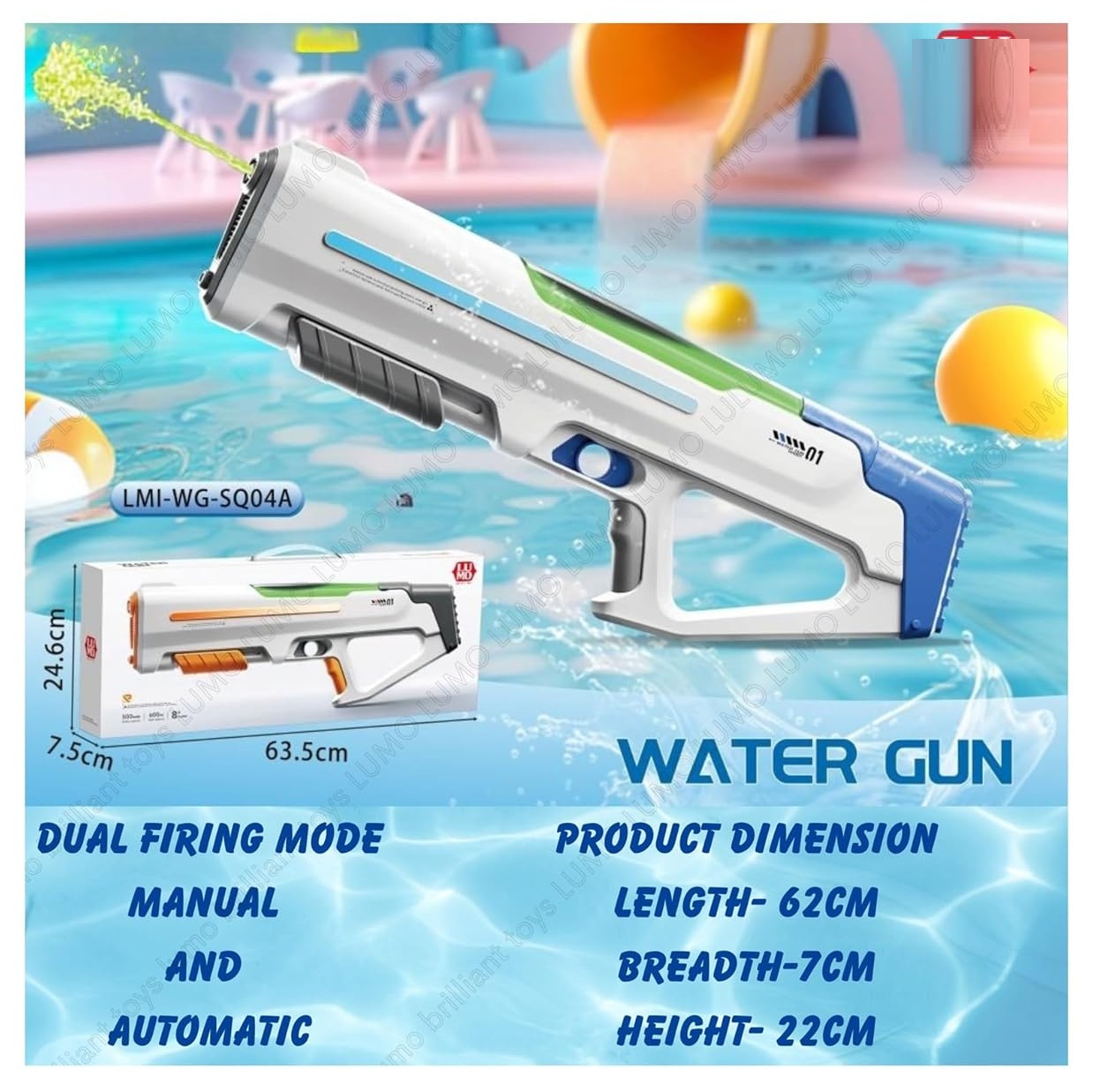 - Long Shooting Range: Powerful water blaster with a shooting range of up to 25 feet, making it ideal for games, backyard battles, and summer water fights.