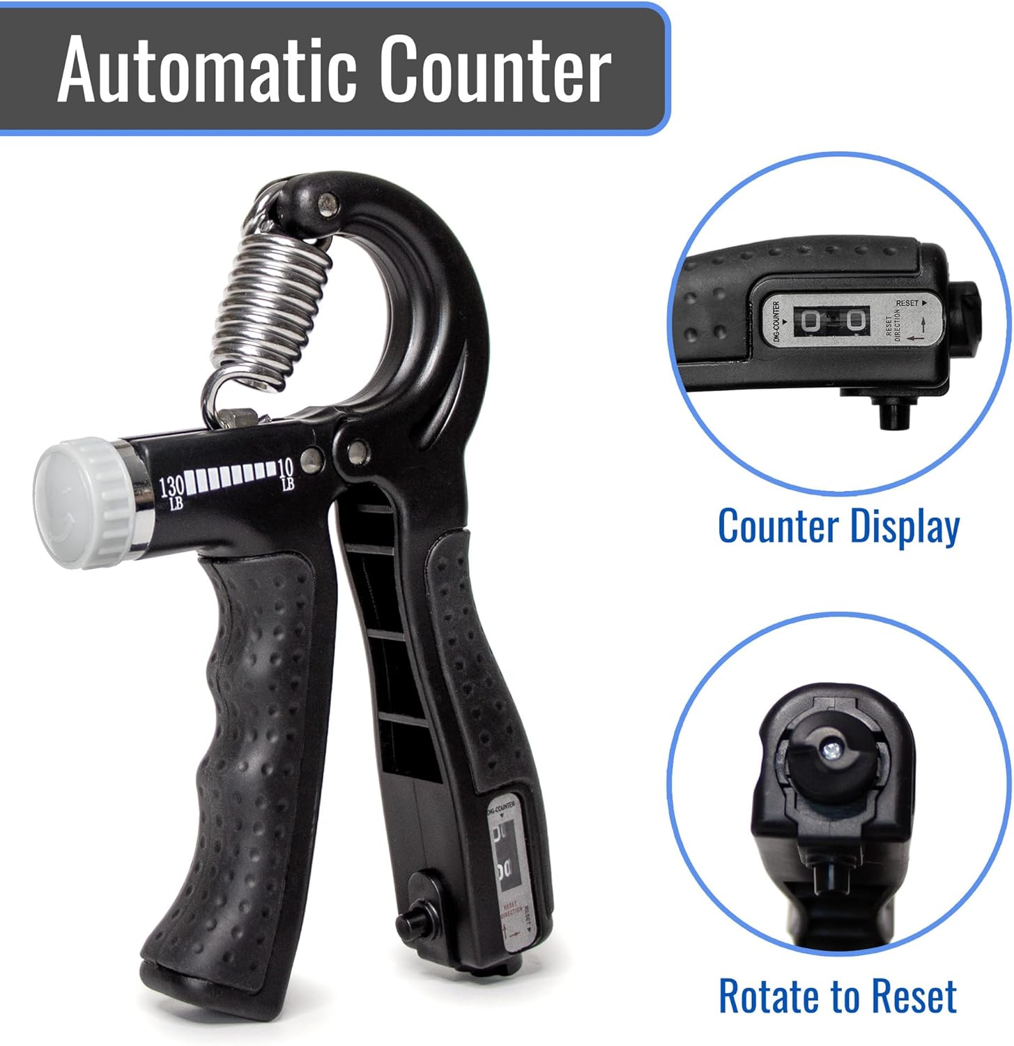 - A built-in squeeze (grip) counter keeps track of every movement for exercise routine consistency and to track your strength progression.