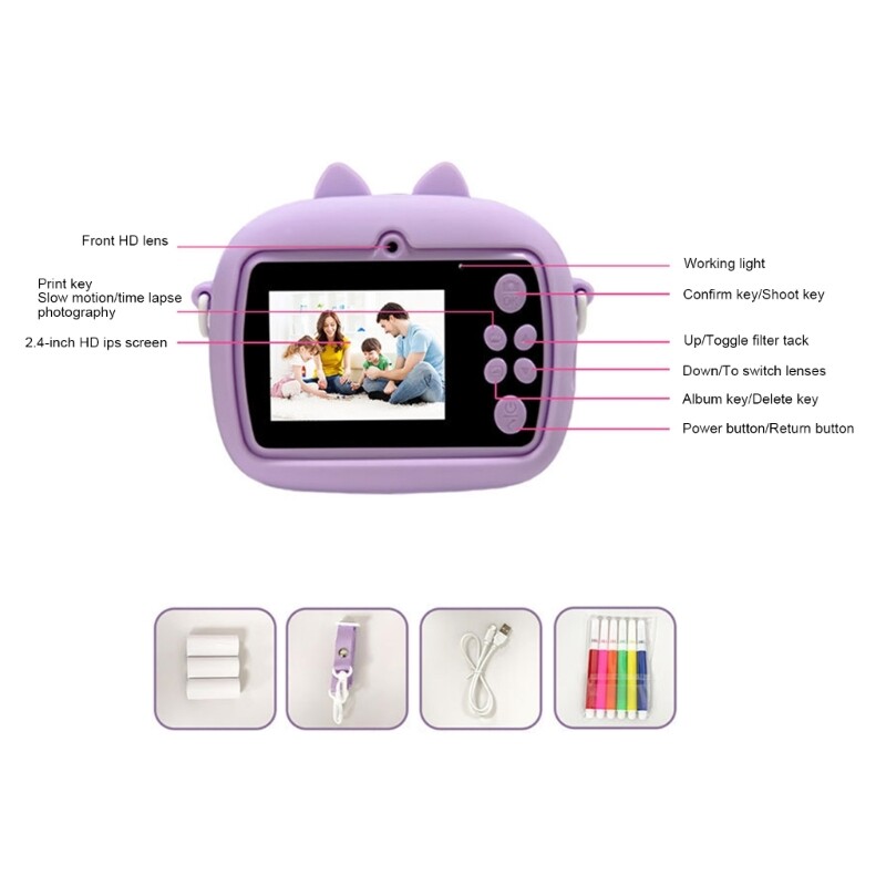 Features: The Rechargeable Kids Camera with Instantly Print is a tool that combines photography and instantly printing, allowing children to capture and print their magical moment in high definitions.